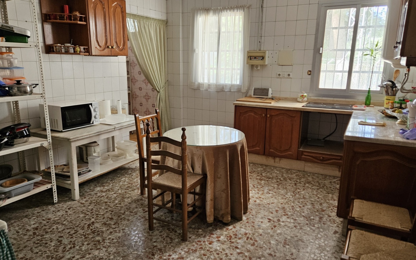 This property located in a strategic area of the town of Vélez de Benaudalla. It has almost 750m2 of construction where it formerly housed a bar-restaurant with a large home on the upper floor. In the underground floor we have a large garage with a large capacity for several vehicles. On the main floor, right at the entrance we find the bar counter and two separate toilets for men and women. Access to the large living room where the dining room tables in the restaurant were previously located, with a large fireplace that presides over said room. Large room for the industrial kitchen, cold rooms, etc. From the living room you can access the enormous covered terrace with glass, views of the Vélez River and the snow-capped mountain. On this same floor we also have two very large rooms with a bathroom included in the same room. Going up to the first floor, where the house is located, we find a huge living room presiding over the floor. Four double rooms with bathroom and one single room. Access to the two terraces with stunning views. This property has a leisure area for the little ones and a small pool. Private parking area outside the property. It is undoubtedly a great property with great potential to reopen the business or transform it into a B&B or even make a villa to use as a home.