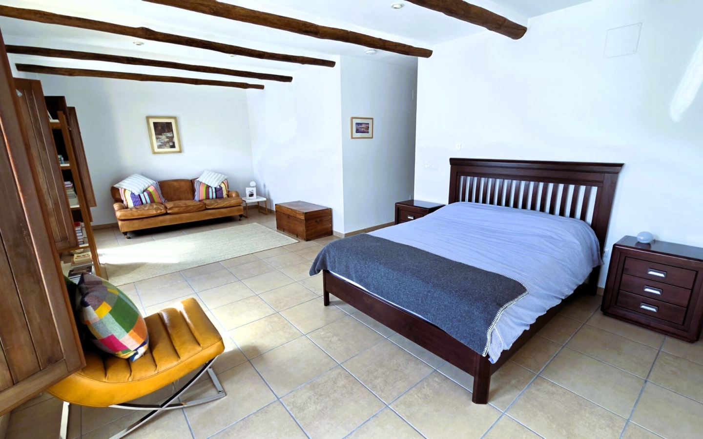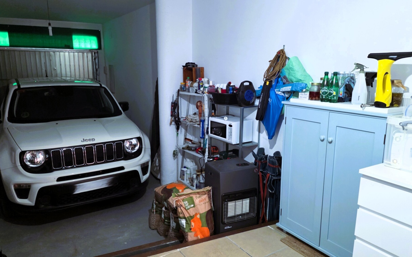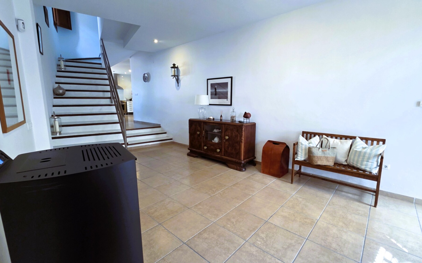 Main Floor (Living and Comfort): Spacious living room featuring an efficient pellet stove. The kitchen is the heart of the home: a generously sized, fully equipped space with a large table ideal for family gatherings. From here, you can access a large private patio with citrus trees and planters, an oasis of tranquility. The floor is completed by a garage that incorporates a functional laundry area. First Floor (Private Rest): A hallway leads to 3 spacious double bedrooms, all with en-suite bathrooms (a rare feature that provides maximum privacy). One of the bedrooms has direct access to a private terrace with mountain views.