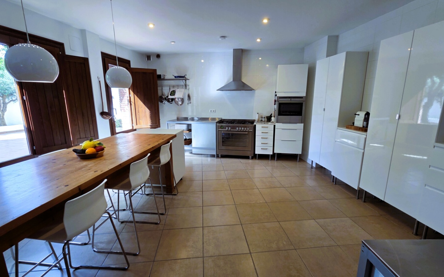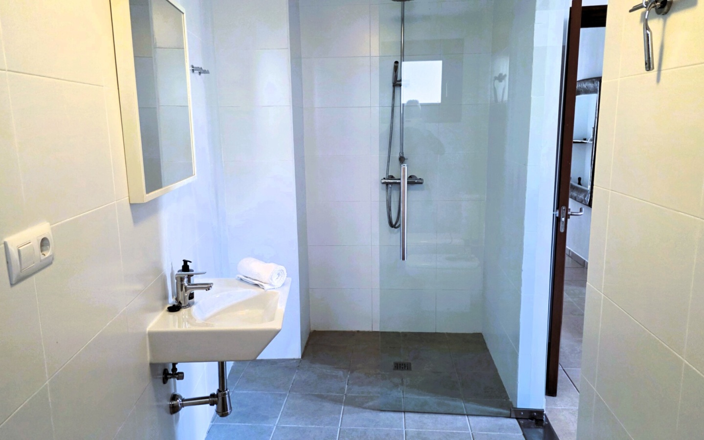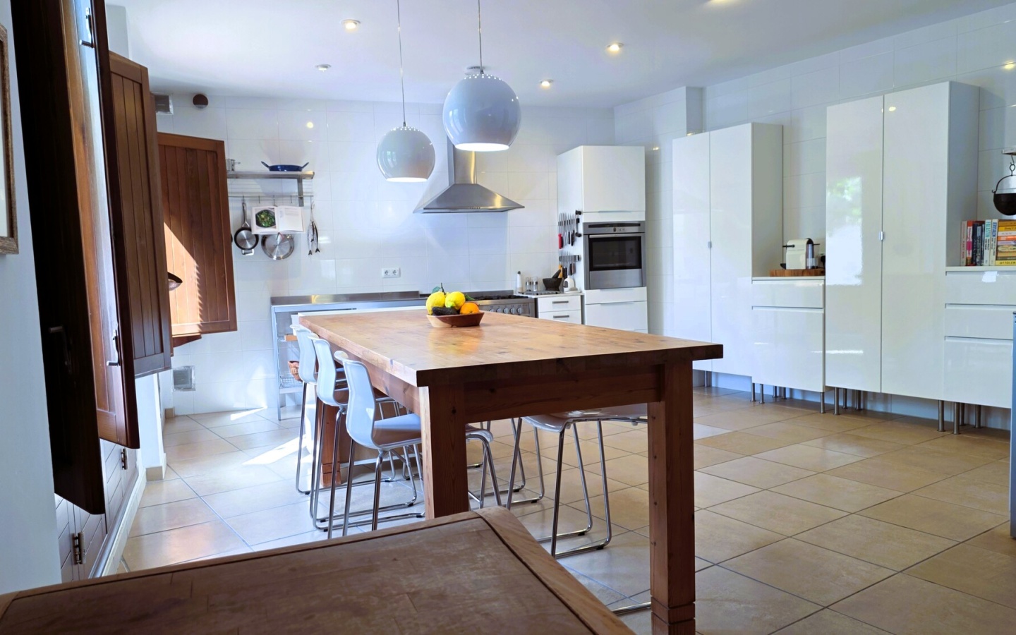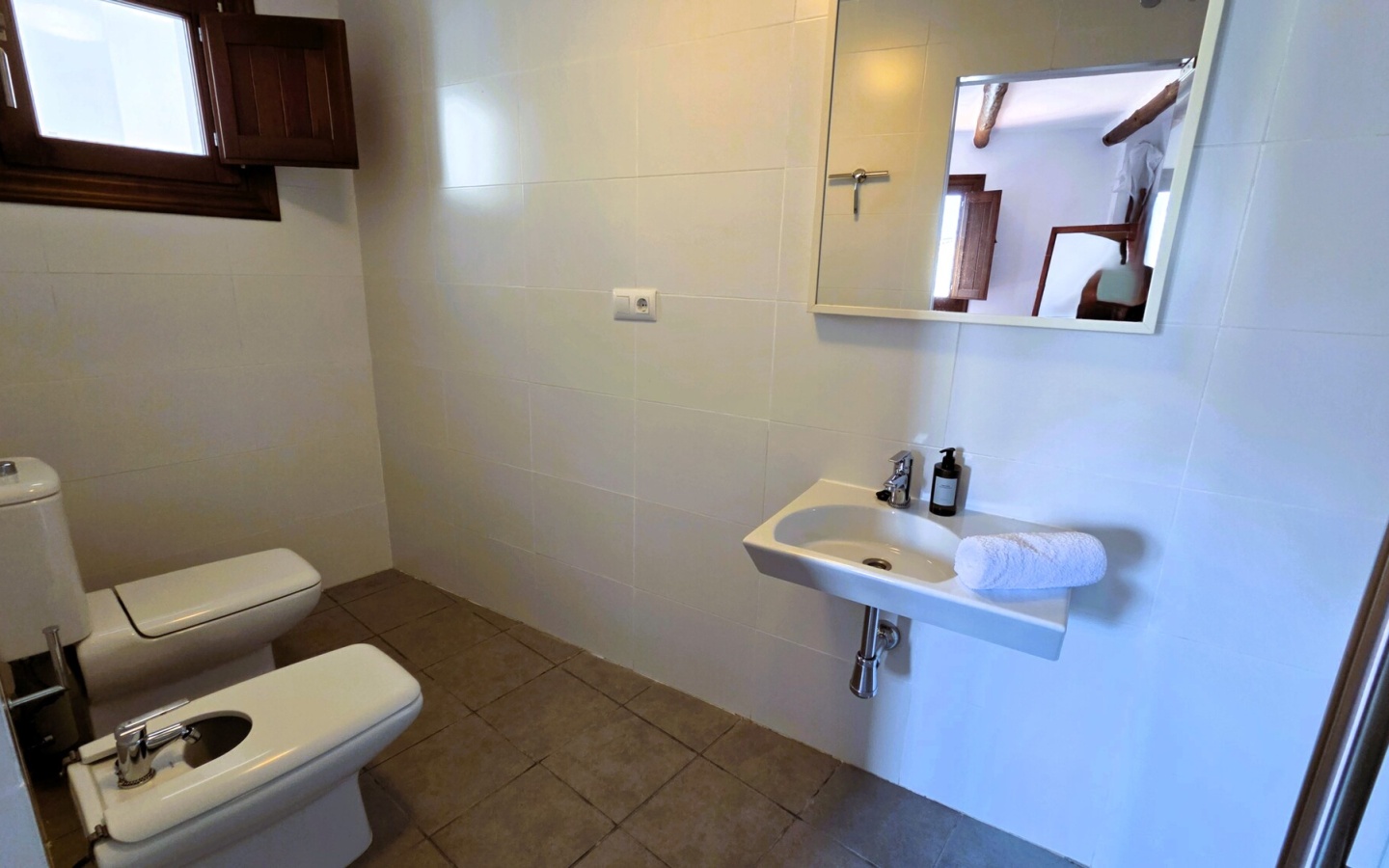 Main Floor (Living and Comfort): Spacious living room featuring an efficient pellet stove. The kitchen is the heart of the home: a generously sized, fully equipped space with a large table ideal for family gatherings. From here, you can access a large private patio with citrus trees and planters, an oasis of tranquility. The floor is completed by a garage that incorporates a functional laundry area. First Floor (Private Rest): A hallway leads to 3 spacious double bedrooms, all with en-suite bathrooms (a rare feature that provides maximum privacy). One of the bedrooms has direct access to a private terrace with mountain views.