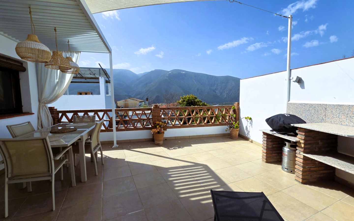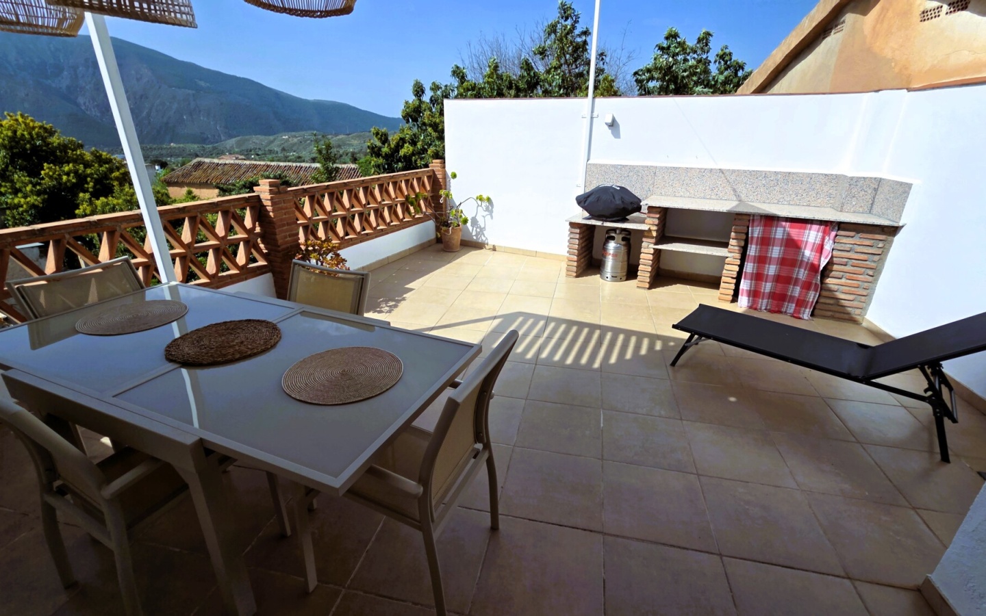 Second Floor (Leisure and Views): Here you'll find a fourth double bedroom (currently used as a reading and TV area) and an impressive Master Suite with large windows. The crowning touch is the enormous panoramic terrace with a barbecue area and outdoor dining space, facing the majestic peaks of the Sierra Lújar mountain range.