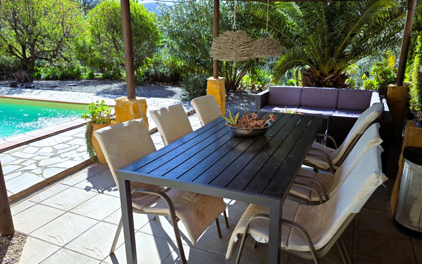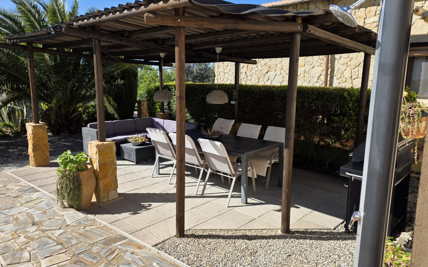 Multiple terrace areas for different times of day.