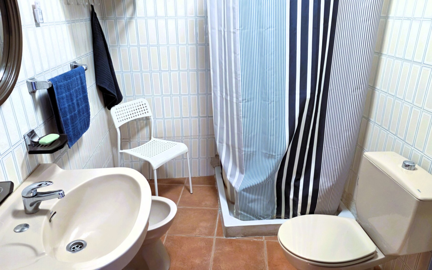 Bathroom: A complete bathroom with a modern shower.