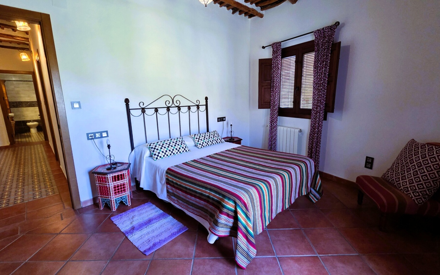 Style: A fusion of rustic Alpujarra charm (ceilings with exposed wooden beams and exposed brick) and colorful bohemian touches, creating a warm and inviting atmosphere.